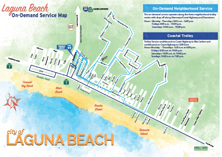- Download the TransLoc app and search for “Laguna Beach Local”